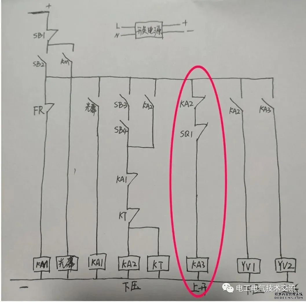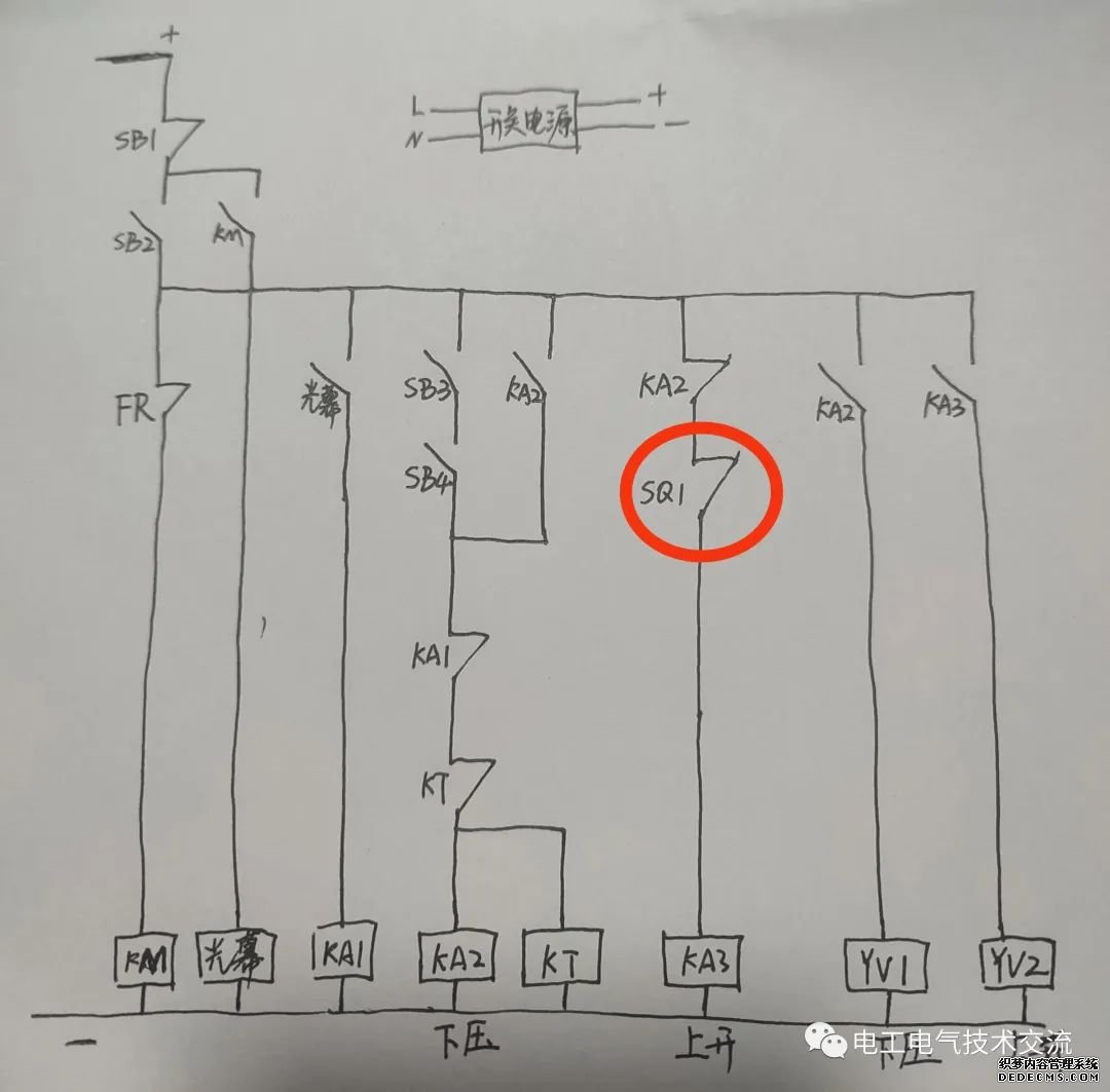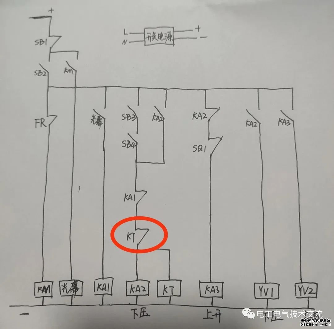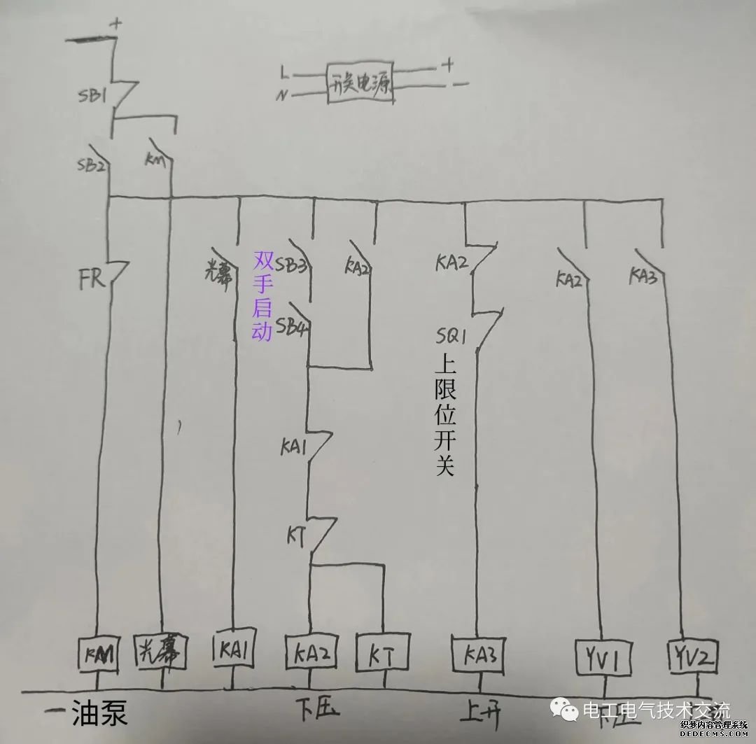 按下啟動按鈕SB2,油泵工作后立即按下雙手按鈕油壓機下壓,松手后,液壓機正常。文章由電工小知識分享電友編著,版權歸原作者,向電友致敬!